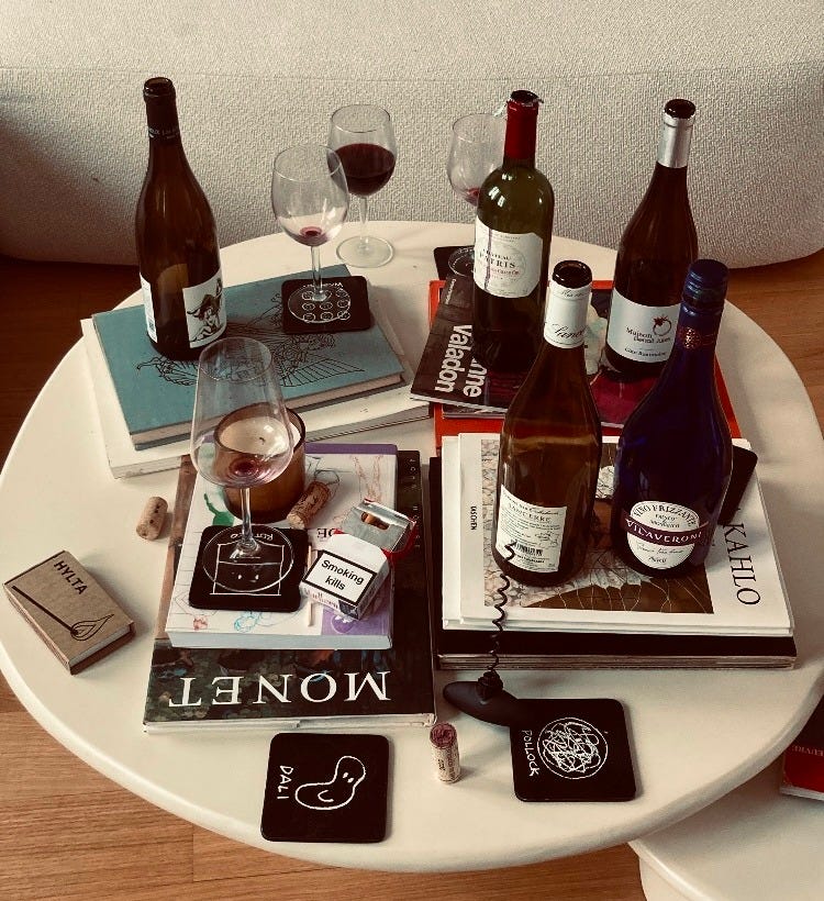 The empty wine glasses and bottles poetically scattered on my coffee table, the morning after a night in with my friends